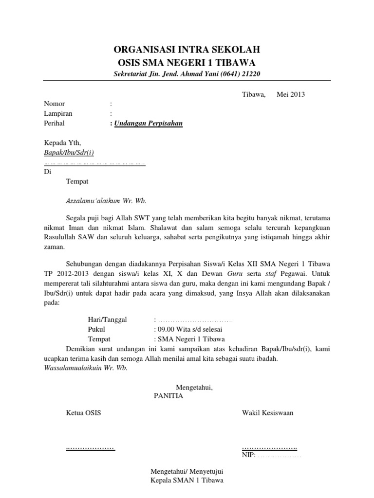 Surat Undangan Perpisahan Kelas Xii
