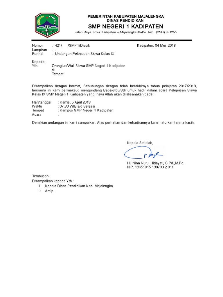 Contoh Surat Undangan Orang Tua Perpisahan Siswa Kelas Ix Smp 2017